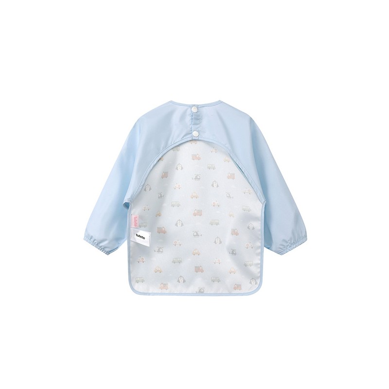 Babete com mangas com estampa City Cars da Tutete, babete com acabamento impermeável, prático e resistente para uso diário do seu bebé. Feito com tecido suave e de fácil limpeza, este babete irá acompanhar o seu bebé para todo o lado.