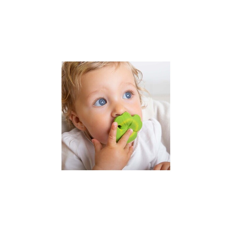 Mini Mordedor Eli o Trevo da Oli & Carol, um mordedor em forma de fruta que vai ajudar a estimular os sentidos do bebé enquanto acalma as gengivas na fase da dentição. Apresente às crianças um estilo de vida saudável desde cedo! O seu tamanho é perfeito para as mão pequeninas e as suas texturas realistas vão ajudar os mais pequenos a desenvolverem o sentido do tato. Sabia que incluir melancia na comida ajuda a manter 90% da água no corpo humano? Eli vai-se tornar no mordedor, no brinquedo de banho e brinquedo sensorial favorito dos bebés e das crianças. Feito seguindo um processo artesanal, sustentável e ecológico com borracha 100% natural de árvores de Hevea. Como é feito todo em uma peça sem furos, evita a criação de bactérias em seu interior. Pintado à mão com pigmentos naturais um por um, então não há dois iguais!